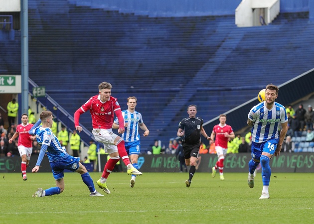 Josh Windass of Wrexham has his shot blocked by Liam Cooper of Sheffield Wednesday during the Sky Bet Championship match Sheffield Wednesday vs Wrexham at Hillsborough, Sheffield, United Kingdom, 31st January 2026, Credit:Richard Bierton/News Images / Avalon