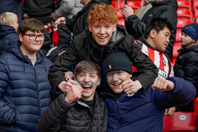 Southampton fans celebrate their team winning 0-2 at full time during the Sky Bet Championship match Stoke City vs Southampton at Bet365 Stadium, Stoke-on-Trent, United Kingdom, 31st January 2026, Credit:Maynard Manyowa/News Images / Avalon
