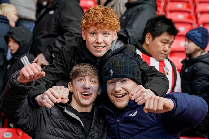 Southampton fans celebrate their team winning 0-2 at full time during the Sky Bet Championship match Stoke City vs Southampton at Bet365 Stadium, Stoke-on-Trent, United Kingdom, 31st January 2026, Credit:Maynard Manyowa/News Images / Avalon