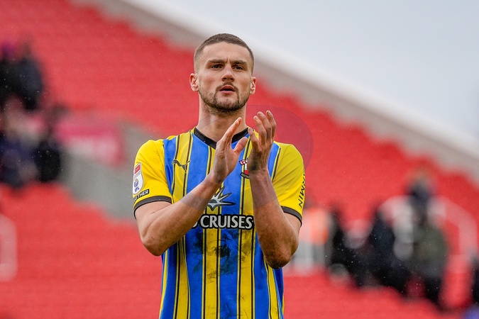 Taylor Harwood-Bellis of Southampton applauds the fans after the final whistle during the Sky Bet Championship match Stoke City vs Southampton at Bet365 Stadium, Stoke-on-Trent, United Kingdom, 31st January 2026, Credit:Maynard Manyowa/News Images / Avalon