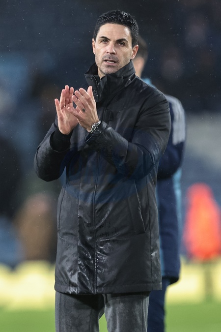 Mikel Arteta manager of Arsenal applauds the fans during the Premier League match Leeds United vs Arsenal at Elland Road, Leeds, United Kingdom, 31st January 2026, Credit:Mark Cosgrove/News Images / Avalon