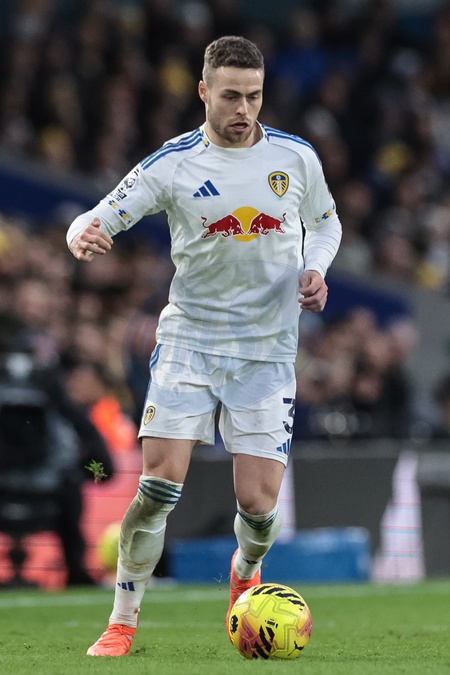 Gabriel Gudmundsson of Leeds United with the ball during the Premier League match Leeds United vs Arsenal at Elland Road, Leeds, United Kingdom, 31st January 2026, Credit:Mark Cosgrove/News Images / Avalon