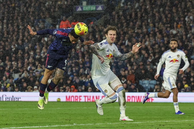 Gabriel Jesus of Arsenal heads on goal during the Premier League match Leeds United vs Arsenal at Elland Road, Leeds, United Kingdom, 31st January 2026, Credit:Mark Cosgrove/News Images / Avalon