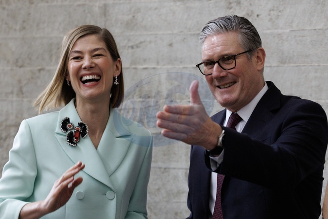 Prime Minister Keir Starmer and Rosamund Pike arts visit