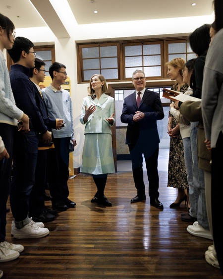 31/01/2026. Shanghai, China. Prime Minister Keir Starmer and Actor Rosamund Pike meet with performing arts students at the Design Innovation Institute Shanghai., Credit:Lauren Hurley / Avalon