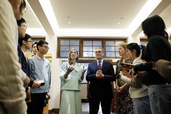 31/01/2026. Shanghai, China. Prime Minister Keir Starmer and Actor Rosamund Pike meet with performing arts students at the Design Innovation Institute Shanghai., Credit:Lauren Hurley / Avalon