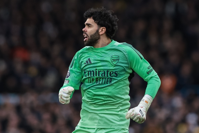 Arsenal goalkeeper David Raya reacts during the Premier League match Leeds United vs Arsenal at Elland Road, Leeds, United Kingdom, 31st January 2026, Credit:Mark Cosgrove/News Images / Avalon