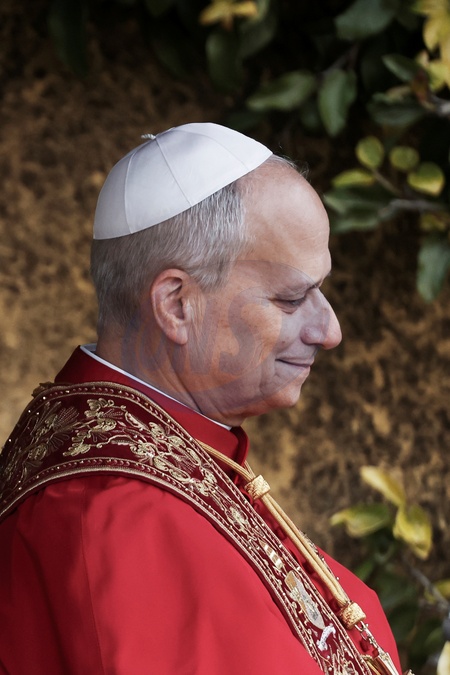 January 31, 2026, Vatican City, Vatican Gardens, Pope Leo XIV blesses the Marian Mosaic and the Statue of St. Rose of Lima donated by Peru, Credit:Alessandra Benedetti/Pool / Avalon
