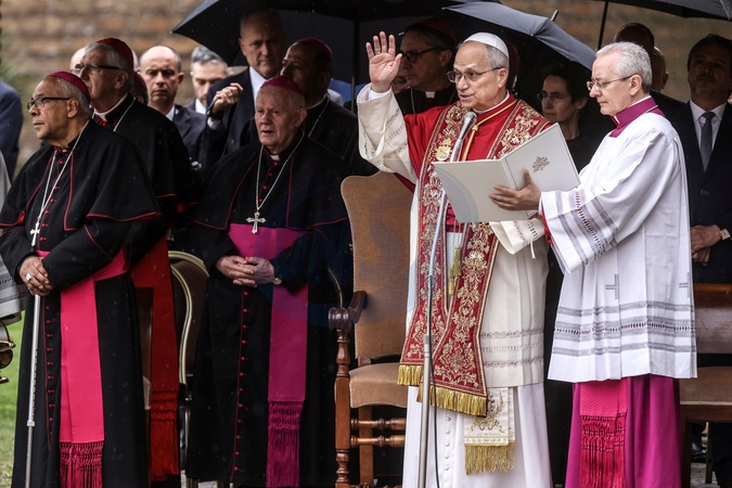 January 31, 2026, Vatican City, Vatican Gardens, Pope Leo XIV blesses the Marian Mosaic and the Statue of St. Rose of Lima donated by Peru, Credit:Alessandra Benedetti/Pool / Avalon