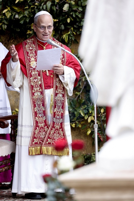January 31, 2026, Vatican City, Vatican Gardens, Pope Leo XIV blesses the Marian Mosaic and the Statue of St. Rose of Lima donated by Peru, Credit:Alessandra Benedetti/Pool / Avalon