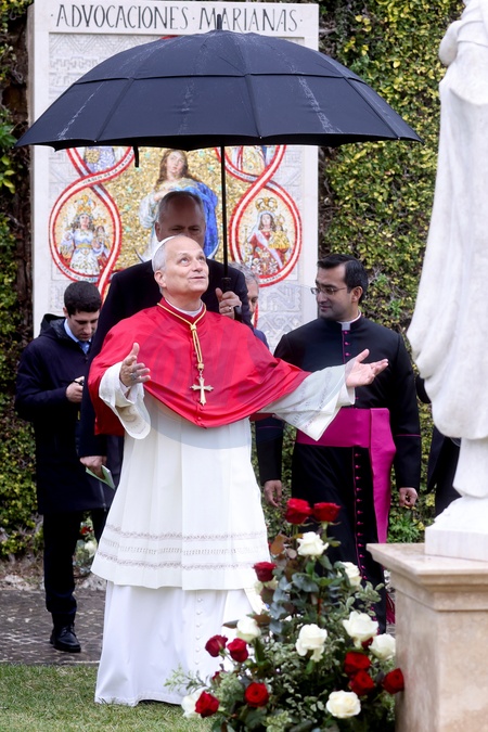 January 31, 2026, Vatican City, Vatican Gardens, Pope Leo XIV blesses the Marian Mosaic and the Statue of St. Rose of Lima donated by Peru, Credit:Alessandra Benedetti/Pool / Avalon
