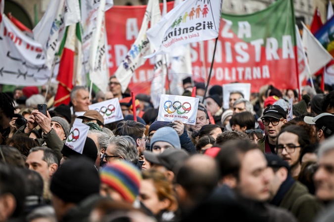 January 31, 2026, Milan. ICE OUT. Left-wing protest against the possible presence of U.S. Special Forces during the Milan-Cortina Winter Olympics., Credit:Nicola Marfisi / Avalon