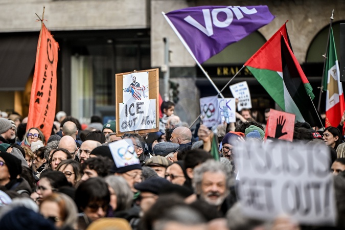 January 31, 2026, Milan. ICE OUT. Left-wing protest against the possible presence of U.S. Special Forces during the Milan-Cortina Winter Olympics., Credit:Nicola Marfisi / Avalon
