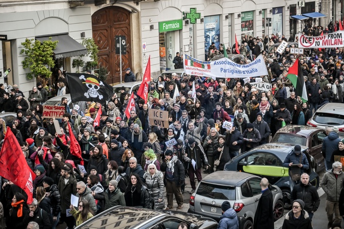 January 31, 2026, Milan. ICE OUT. Left-wing protest against the possible presence of U.S. Special Forces during the Milan-Cortina Winter Olympics., Credit:Nicola Marfisi / Avalon