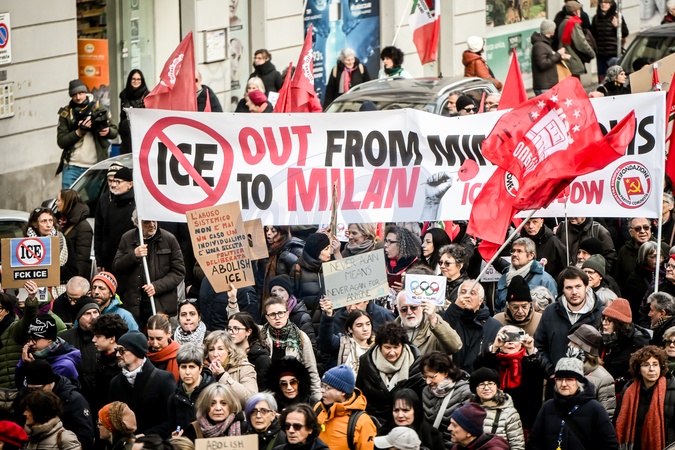 January 31, 2026, Milan. ICE OUT. Left-wing protest against the possible presence of U.S. Special Forces during the Milan-Cortina Winter Olympics., Credit:Nicola Marfisi / Avalon