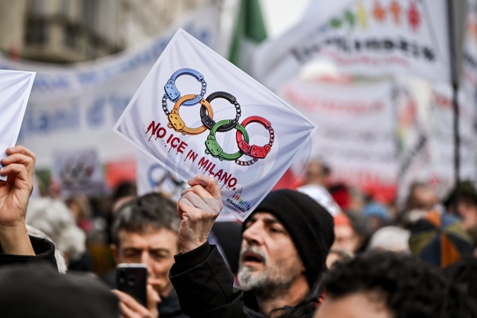January 31, 2026, Milan. ICE OUT. Left-wing protest against the possible presence of U.S. Special Forces during the Milan-Cortina Winter Olympics., Credit:Nicola Marfisi / Avalon
