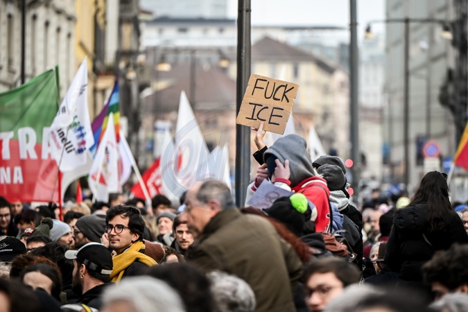 January 31, 2026, Milan. ICE OUT. Left-wing protest against the possible presence of U.S. Special Forces during the Milan-Cortina Winter Olympics., Credit:Nicola Marfisi / Avalon