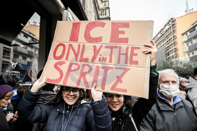 January 31, 2026, Milan. ICE OUT. Left-wing protest against the possible presence of U.S. Special Forces during the Milan-Cortina Winter Olympics., Credit:Nicola Marfisi / Avalon