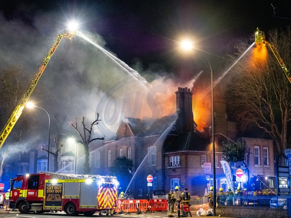 LONDON, UK - 31 Jan 2026: Firefighters from the London Fire Brigade tackle a blaze at a fast food restaurant on Sangley Road in Catford, South London. Five fire engines and a command vehicle attended the scene. London Ambulance Service also attended but left shortly after as there were no reported injuries. The cause of the fire is not yet known., Credit:Pete Speller/Alamy Live News / Avalon