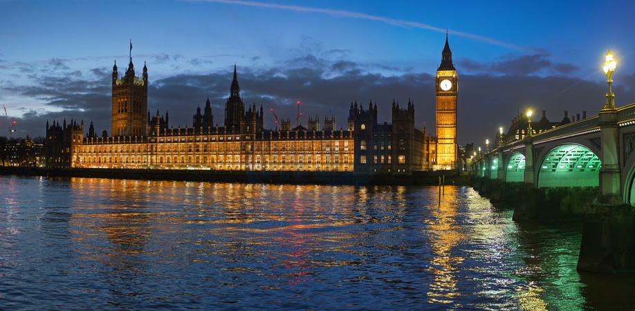 Houses of parliament at Westminster, London in the evening by the River Thames in london. UK.