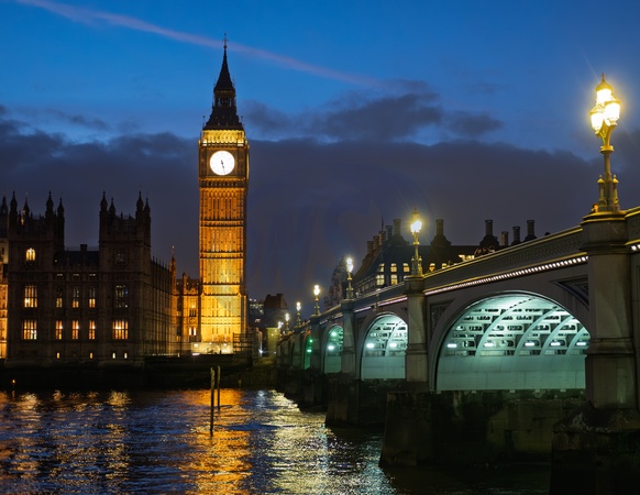 Houses of parliament at Westminster, London in the evening by the River Thames in london. UK.