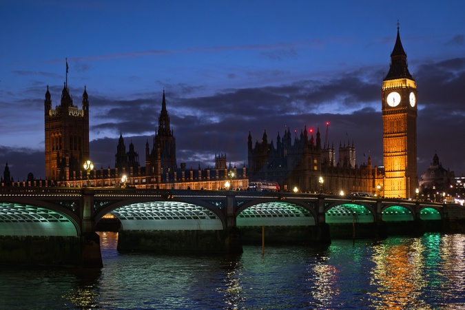 Houses of parliament at Westminster, London in the evening by the River Thames in london. UK.