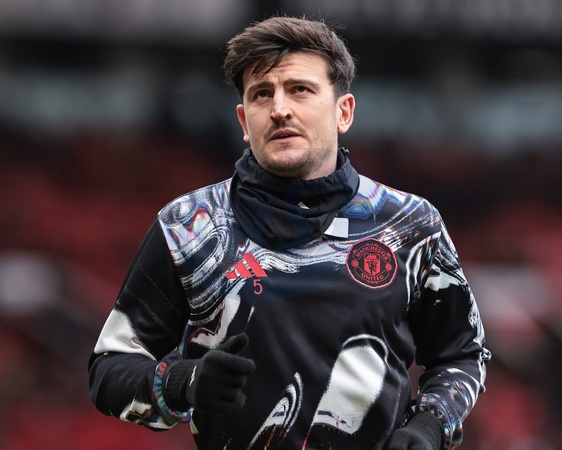Harry Maguire of Manchester United in the pregame warmup session during the Premier League match Manchester United vs Fulham at Old Trafford, Manchester, United Kingdom, 1st February 2026, Credit:Mark Cosgrove/News Images / Avalon