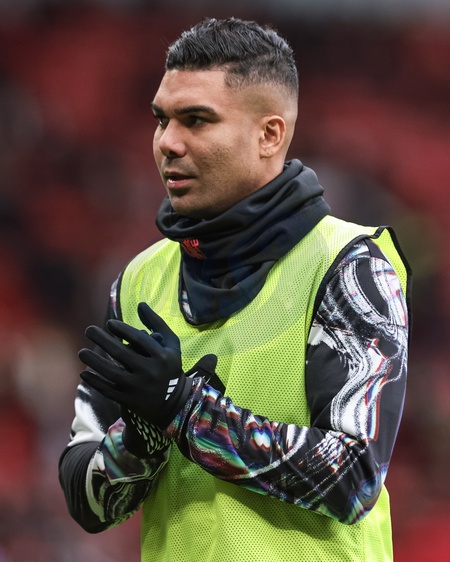 Casemiro of Manchester United in the pregame warmup session during the Premier League match Manchester United vs Fulham at Old Trafford, Manchester, United Kingdom, 1st February 2026, Credit:Mark Cosgrove/News Images / Avalon