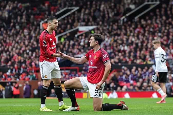 Diogo Dalot of Manchester United high-fives Harry Maguire of Manchester United during the Premier League match Manchester United vs Fulham at Old Trafford, Manchester, United Kingdom, 1st February 2026, Credit:Mark Cosgrove/News Images / Avalon