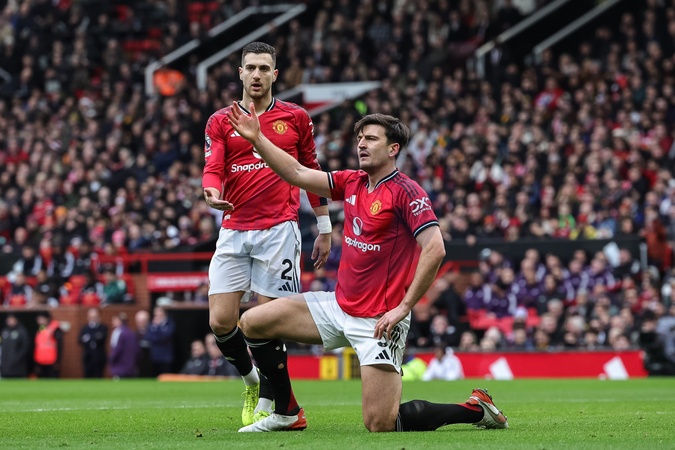 Harry Maguire of Manchester United reacts after being fouled during the Premier League match Manchester United vs Fulham at Old Trafford, Manchester, United Kingdom, 1st February 2026, Credit:Mark Cosgrove/News Images / Avalon
