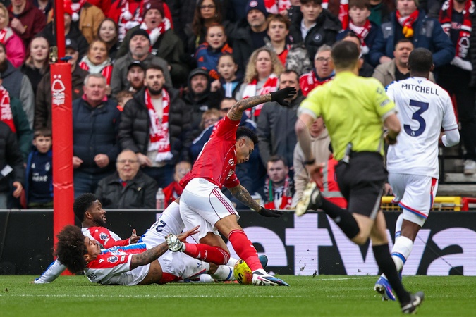 Igor Jesus of Nottingham Forest brought down in the box - decision no penalty during the Premier League match Nottingham Forest vs Crystal Palace at City Ground, Nottingham, United Kingdom, 1st February 2026, Credit:Ae Cosgrove/News Images / Avalon