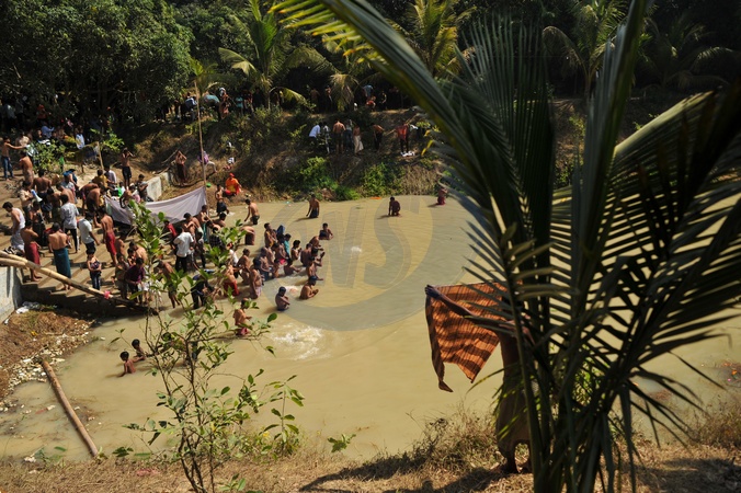 Chattogram, Bangladesh- Devotees doing Holy Ganga Bath in the Kumbh Mela premises. Rishi Kumbh Mela is a major Hindu pilgrimage and cultural gathering held in the Rishi Dham area of Banshkhali Upazila, Chattogram, Bangladesh. Recognized as the country's only international Rishi Kumbh, the fair takes place approximately every three years and serves as a significant event for spiritual devotion, religious education, and social unity among Hindu communities., Credit:Md Rafayat Haque Khan / Avalon