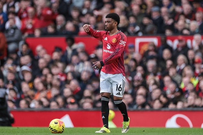 Amad Diallo of Manchester United reacts during the Premier League match Manchester United vs Fulham at Old Trafford, Manchester, United Kingdom, 1st February 2026, Credit:Mark Cosgrove/News Images / Avalon