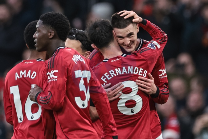 Benjamin Sesko of Manchester United celebrates his goal to make it 3-2 during the Premier League match Manchester United vs Fulham at Old Trafford, Manchester, United Kingdom, 1st February 2026, Credit:Mark Cosgrove/News Images / Avalon