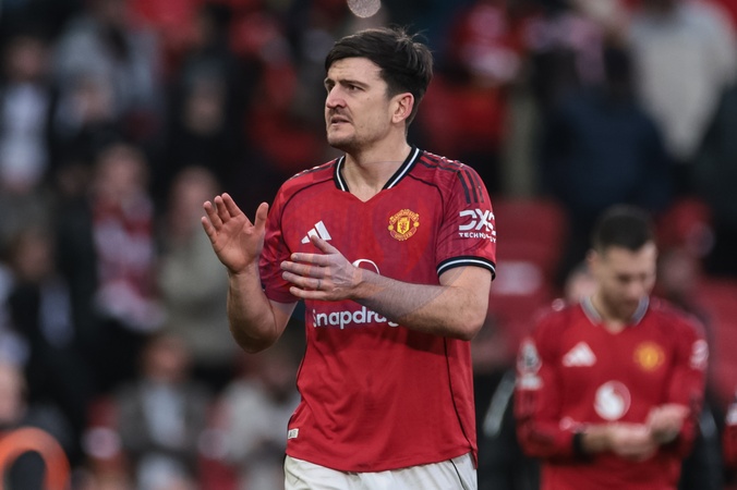 Harry Maguire of Manchester United applauds the fans during the Premier League match Manchester United vs Fulham at Old Trafford, Manchester, United Kingdom, 1st February 2026, Credit:Mark Cosgrove/News Images / Avalon