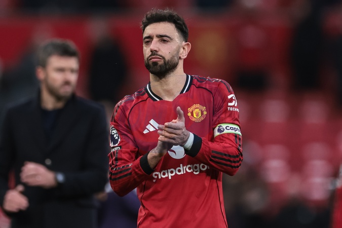 Bruno Fernandes of Manchester United applauds the fans during the Premier League match Manchester United vs Fulham at Old Trafford, Manchester, United Kingdom, 1st February 2026, Credit:Mark Cosgrove/News Images / Avalon