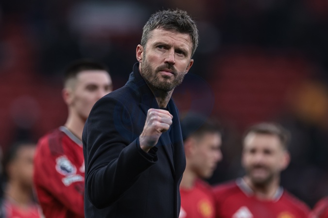 Michael Carrick manager of Manchester United celebrates the 3-2 win with the fans during the Premier League match Manchester United vs Fulham at Old Trafford, Manchester, United Kingdom, 1st February 2026, Credit:Mark Cosgrove/News Images / Avalon