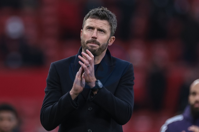 Michael Carrick manager of Manchester United applauds the fans during the Premier League match Manchester United vs Fulham at Old Trafford, Manchester, United Kingdom, 1st February 2026, Credit:Mark Cosgrove/News Images / Avalon