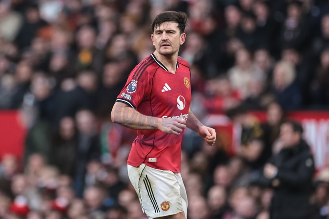Harry Maguire of Manchester United during the Premier League match Manchester United vs Fulham at Old Trafford, Manchester, United Kingdom, 1st February 2026, Credit:Mark Cosgrove/News Images / Avalon