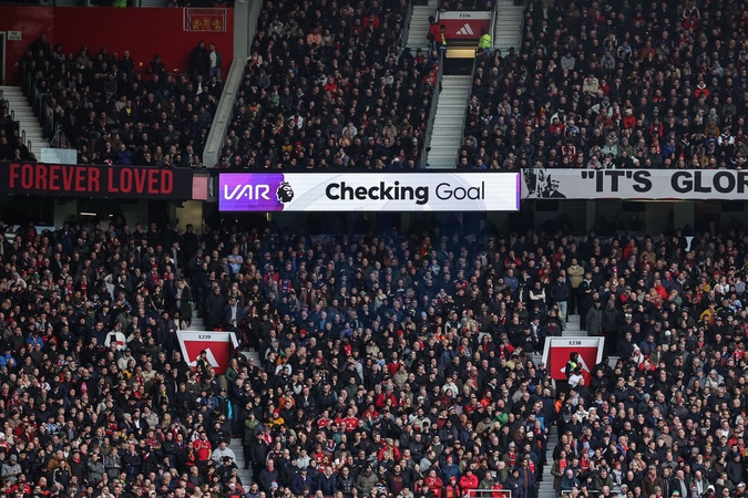 Video assistent referee James Bell checks a Fulham goal during the Premier League match Manchester United vs Fulham at Old Trafford, Manchester, United Kingdom, 1st February 2026, Credit:Mark Cosgrove/News Images / Avalon
