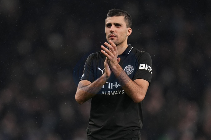 Rodri of Manchester City applauds away support during the Premier League match Tottenham Hotspur vs Manchester City at Tottenham Hotspur Stadium, London, United Kingdom, 1st February 2026, Credit:Harvey Murphy/News Images / Avalon