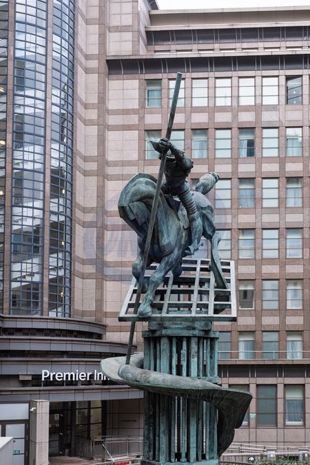 Premier Inn at Blackfriars, with a distinctive George and the Dragon sculpture. London. UK