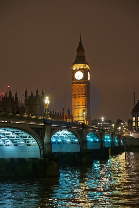 The Houses of Parliament, home of the UK Government,adjacent to the River Thames at night. London. UK