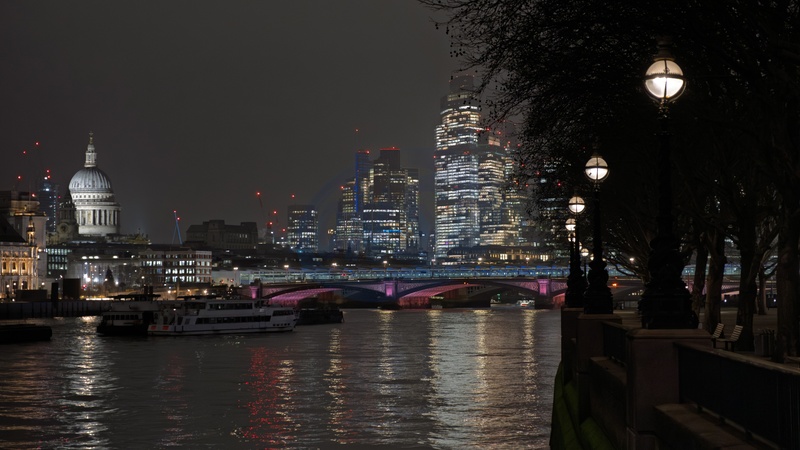 St Paul's cathedral and the City of london,seen from the Embankment on the south side of the River Thames at night.London. United Kingdom. 29 January 2026, Credit:Mark Fairhurst / Avalon