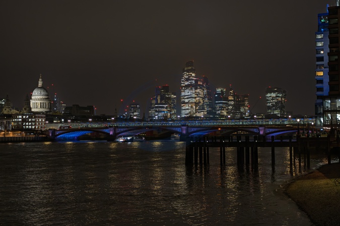 City of London at night seen from a jetty on the south side of the River Thames near Blackfriars bridge.London. United Kingdom. 29 January 2026, Credit:Mark Fairhurst / Avalon