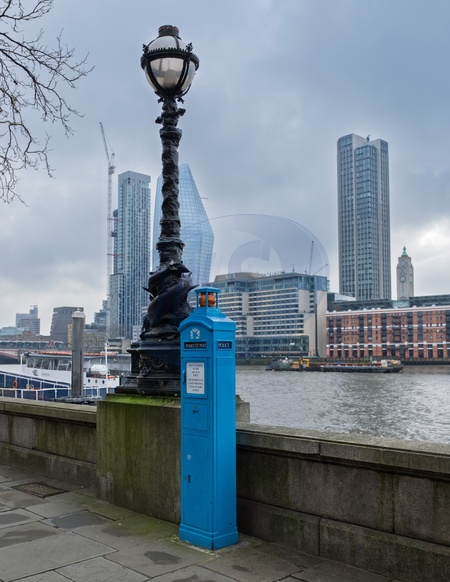 An old disused City of London police telephone box,which could be used to communicate with the control room when radios were not in use. Some were used in the 1980's and 90's to pass secure messages that could not be sent by radio in case the IRA were listening.Victoria Embankment. City of london.London . United Kingdom. 29 January 2026, Credit:Mark Fairhurst / Avalon