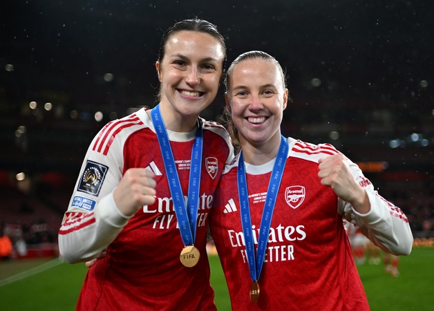 LONDON, ENGLAND - FEBRUARY 01: Lotte Wubben-Moy and Beth Mead of Arsenal FC celebrate following the FIFA Women's Champions Cup 2026 Final match between Arsenal Women FC and SC Corinthians at Arsenal Stadium on February 01, 2026 in London, England., Credit:JB1 / JB1 / Avalon