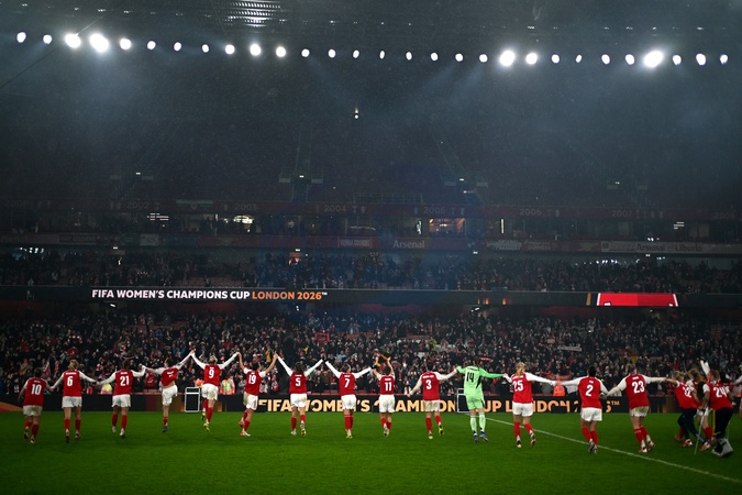 LONDON, ENGLAND - FEBRUARY 01: Arsenal players celebrate with fans follwing the FIFA Women's Champions Cup 2026 Final match between Arsenal Women FC and SC Corinthians at Arsenal Stadium on February 01, 2026 in London, England., Credit:JB1 / JB1 / Avalon