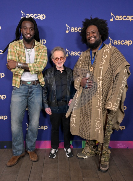 LOS ANGELES, CALIFORNIA - JANUARY 30: (L-R) Shaboozey, ASCAP President and Chairman Paul Williams and Kamasi Washington attend the ASCAP Grammy Brunch in The Garden at Four Seasons Hotel Los Angeles at Beverly Hills on January 30, 2026 in Los Angeles, California. *** Local Caption ***, Credit:DI / DI / Avalon