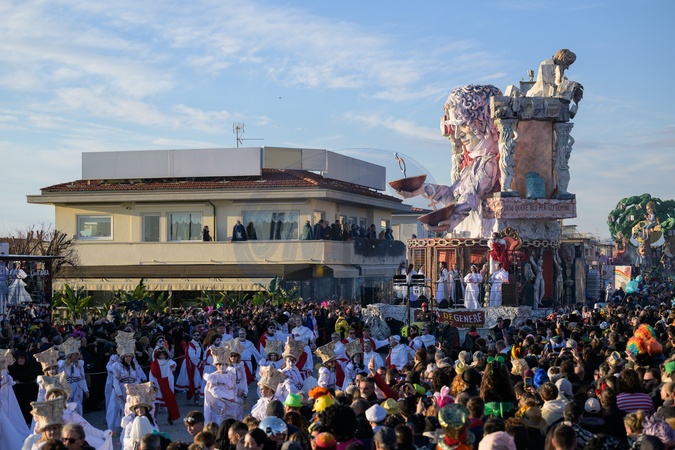 First masked parade of the Viareggio Carnival 2026. In the photo, the second category float "Degenerate Parity" by Priscilla Borri . Viareggio, Italy 01 Feb 2026, Credit:Stefano Dalle Luche / Avalon